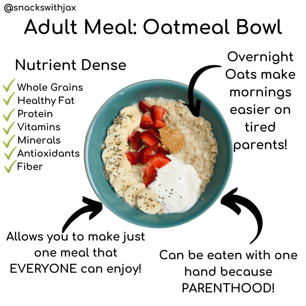 - Protein, such as black beans, lentils, tofu, soft cooked chicken or beef, eggs*, nut* butter or fish *