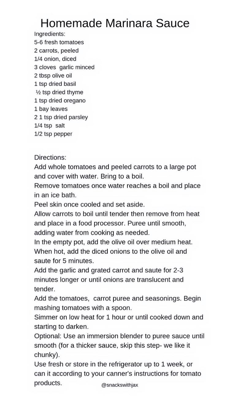 Marinara sauce is one of my favorites. I would eat just about anything with marinara sauce and melted cheese on top. The only downside to marinara sauce is that many of them are full of added sugar– even many homemade recipes include it. This is to help balance out the acidity from the tomatoes however there is a way to do that without added sugar! Believe it or not, carrots are acutally an amazing way to sweeten marinara sauce and also add more nutreints. You can find my recipe for marinara sauce below. I usually make a large batch and then freeze it in smaller portions to use for quick meals.