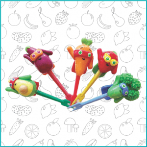 We are a HUGE fan of food picks! They take meals to an entirely new level. In the beginning, we used “Starbucks drink stoppers” because of their blunted ends. As Jax mastered those, we moved on to more advanced food picks.