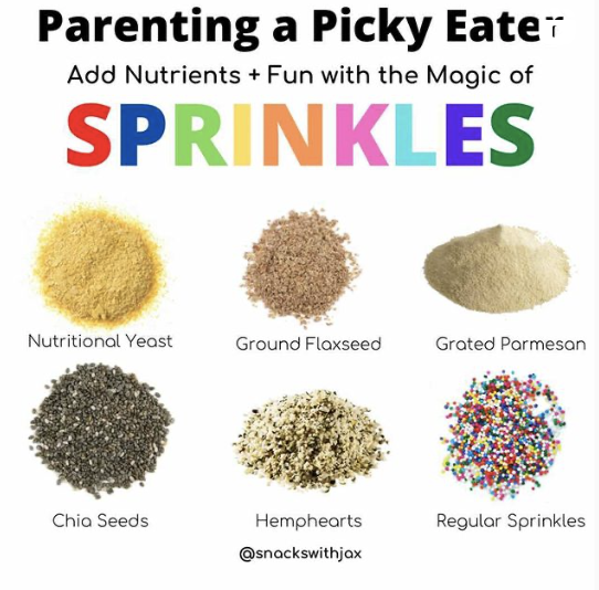 Just like dips ( check out this post), sprinkles can be a great way to add extra nutrients as well!