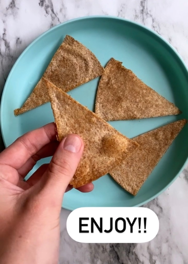 These are the perfect recipe for little your little one help! Grab a pair of children’s safety scissors (make sure to wash them) and let them cut up their own tortilla chips.